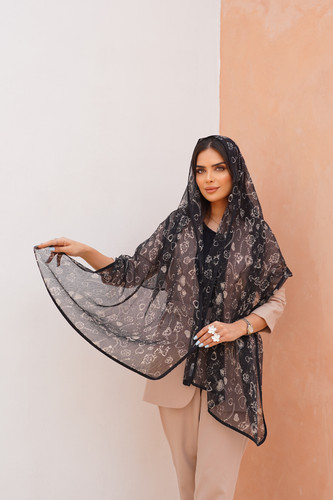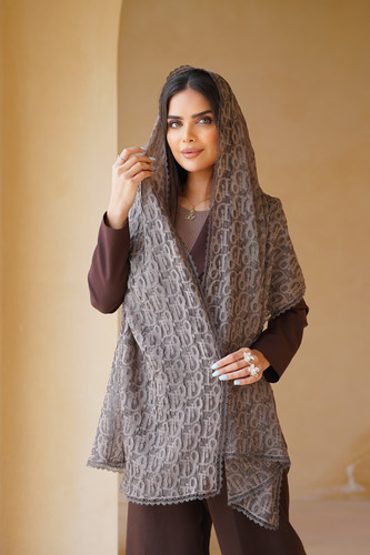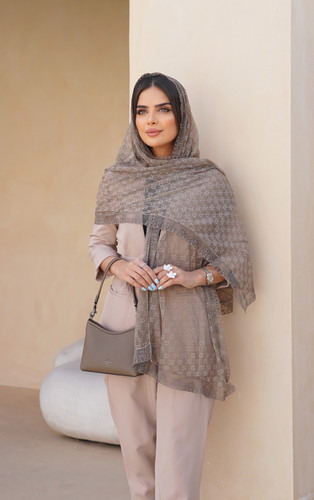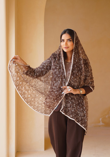 شال مجلسی نخ ابریشم مارک قهوه ای