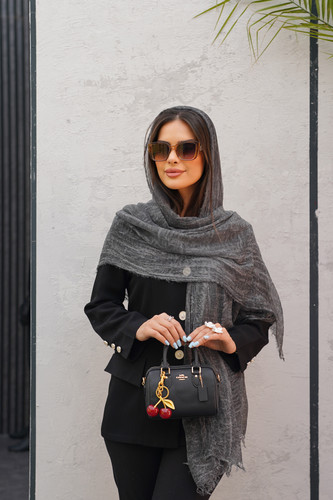 شال مجلسی نخ ابریشم مارک سرمه ای