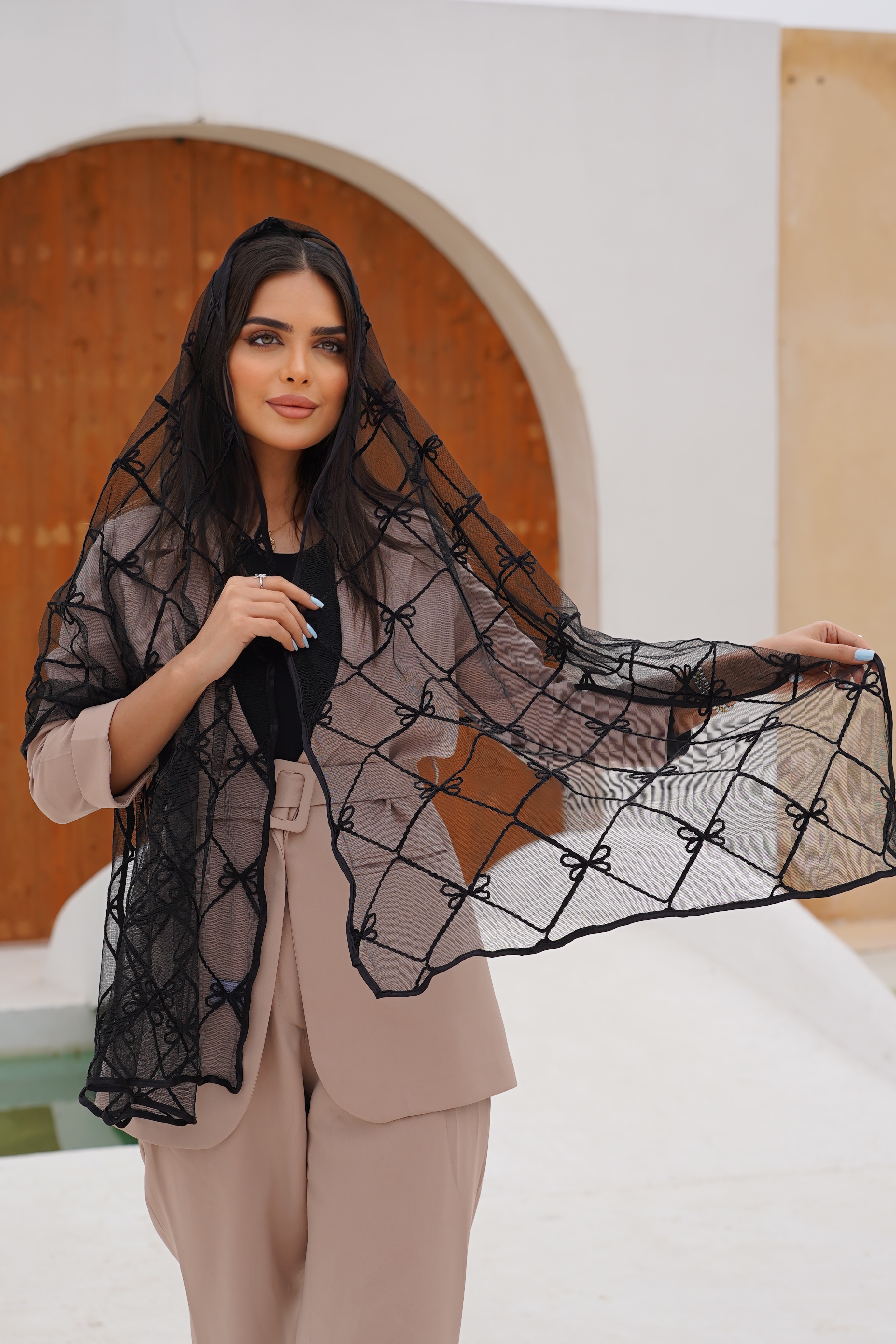 شال مجلسی مشکی تور پاپیون