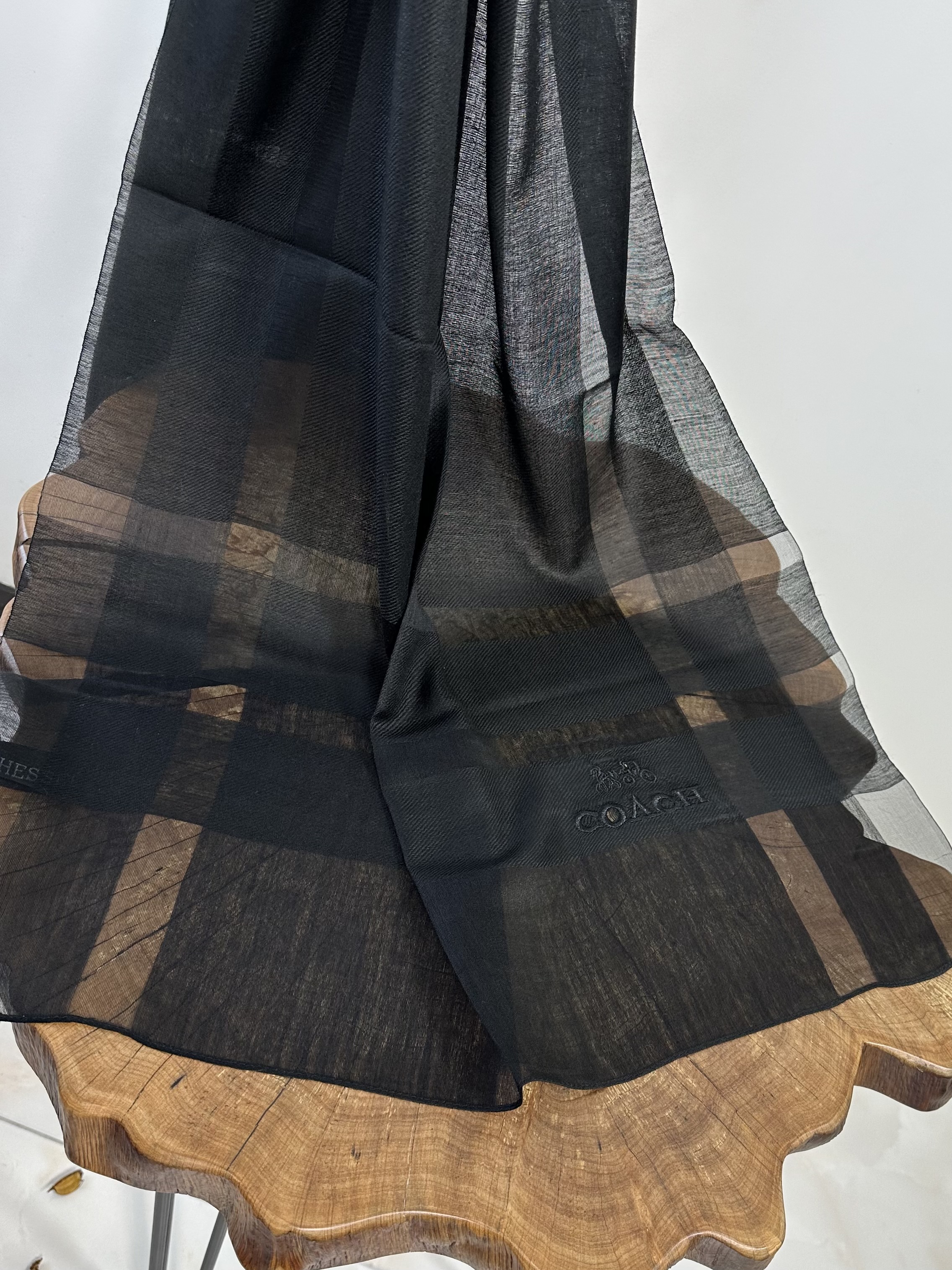 شال نخ ابریشم در رنگ مشکی (مشتری عزیز عکاسی انجام شده از شال در نور آفتاب بوده و بدون هیچ ادیتی بارگذاری شده این اطمینان رو از ولوریا داشته باشید که شال فوق از لحاظ مشکی بودن در درجه بالا هست و اصلا بور نیست) سرخور این شال فوق العاد است و این اطمینان رو به شما میدم که استایلی متفاوت رو برای شما رقم میزند این که در چهار مارک ترند تقدیمتون میشه .