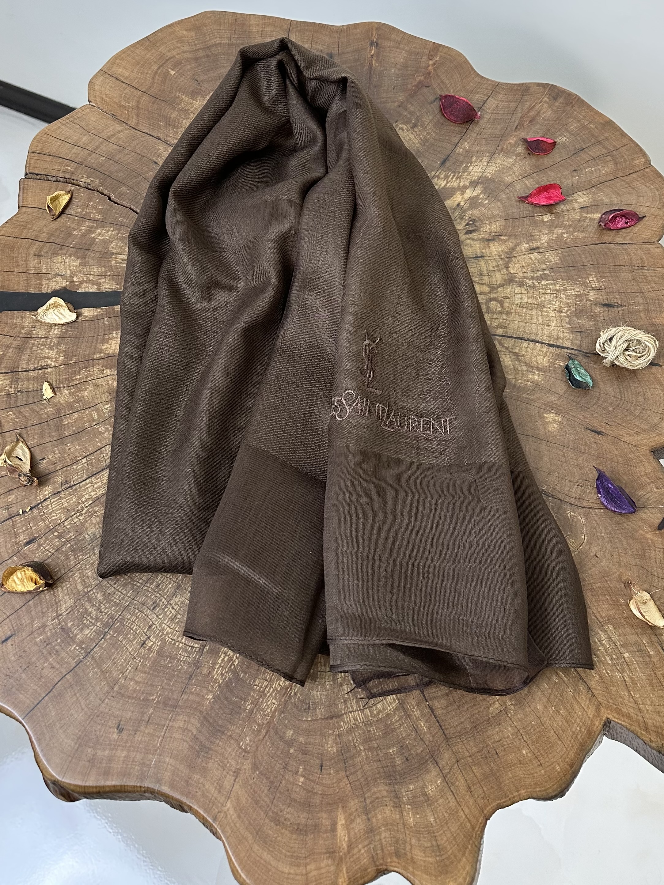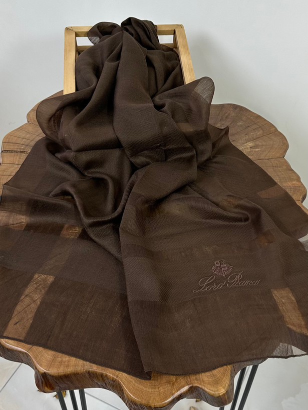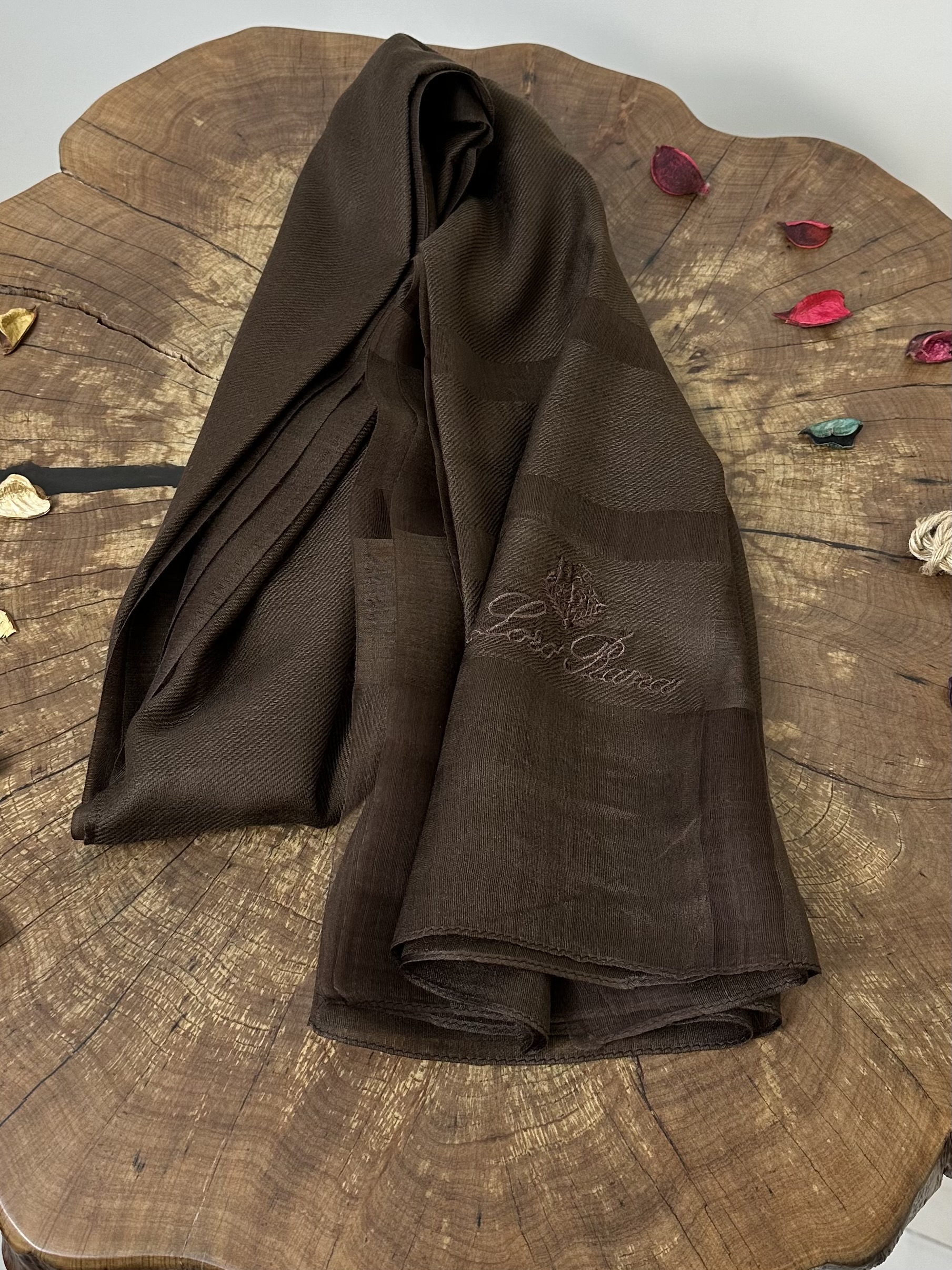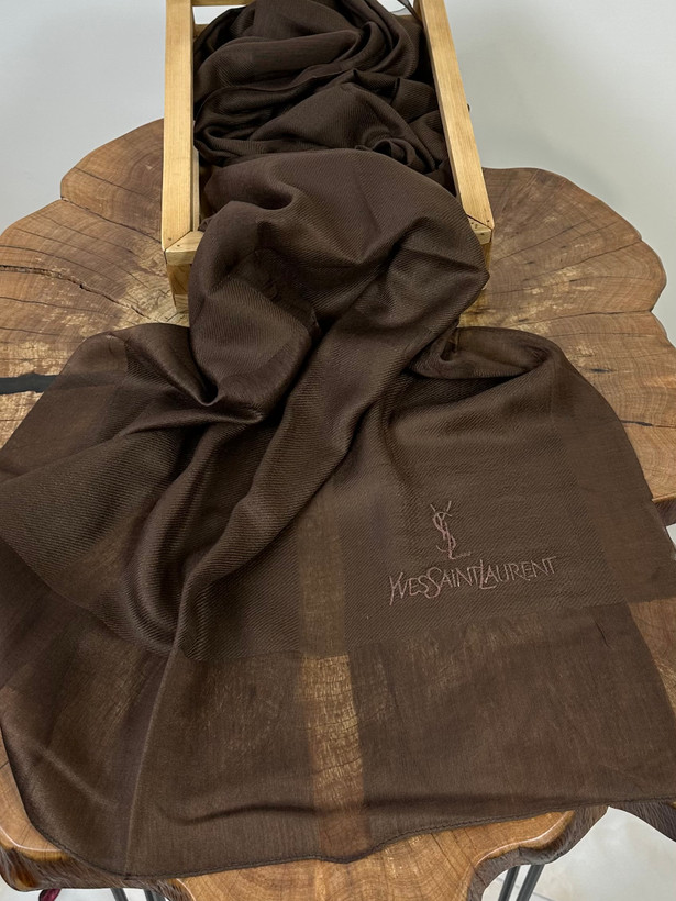 شال نخ ابریشم در رنگ قهوه ای تیره (مشتری عزیز عکاسی انجام شده از شال در نور آفتاب بوده و بدون هیچ ادیتی بارگذاری شده) سرخور این شال فوق العاد است و این اطمینان رو به شما میدم که استایلی متفاوت رو برای شما رقم میزند و این که در سه مارک ترند تقدیمتون میشه .